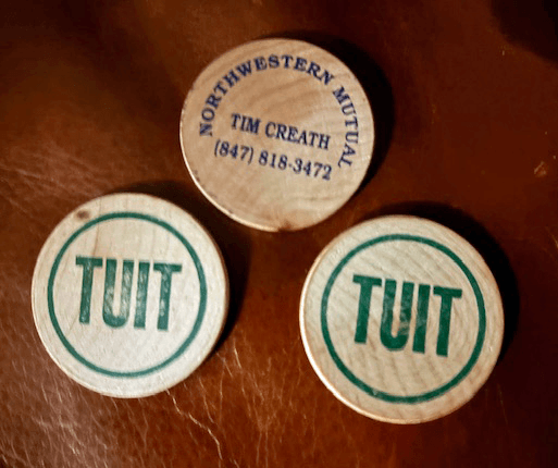 Our company owned tooling for producing plastic tokens the size of a Silver Dollar. I had listed tokens in a catalog for custom-imprinted merchandise. He saw the listing and knew that if we imprinted the word “TUIT” onto our token. We could be in the TUIT business.